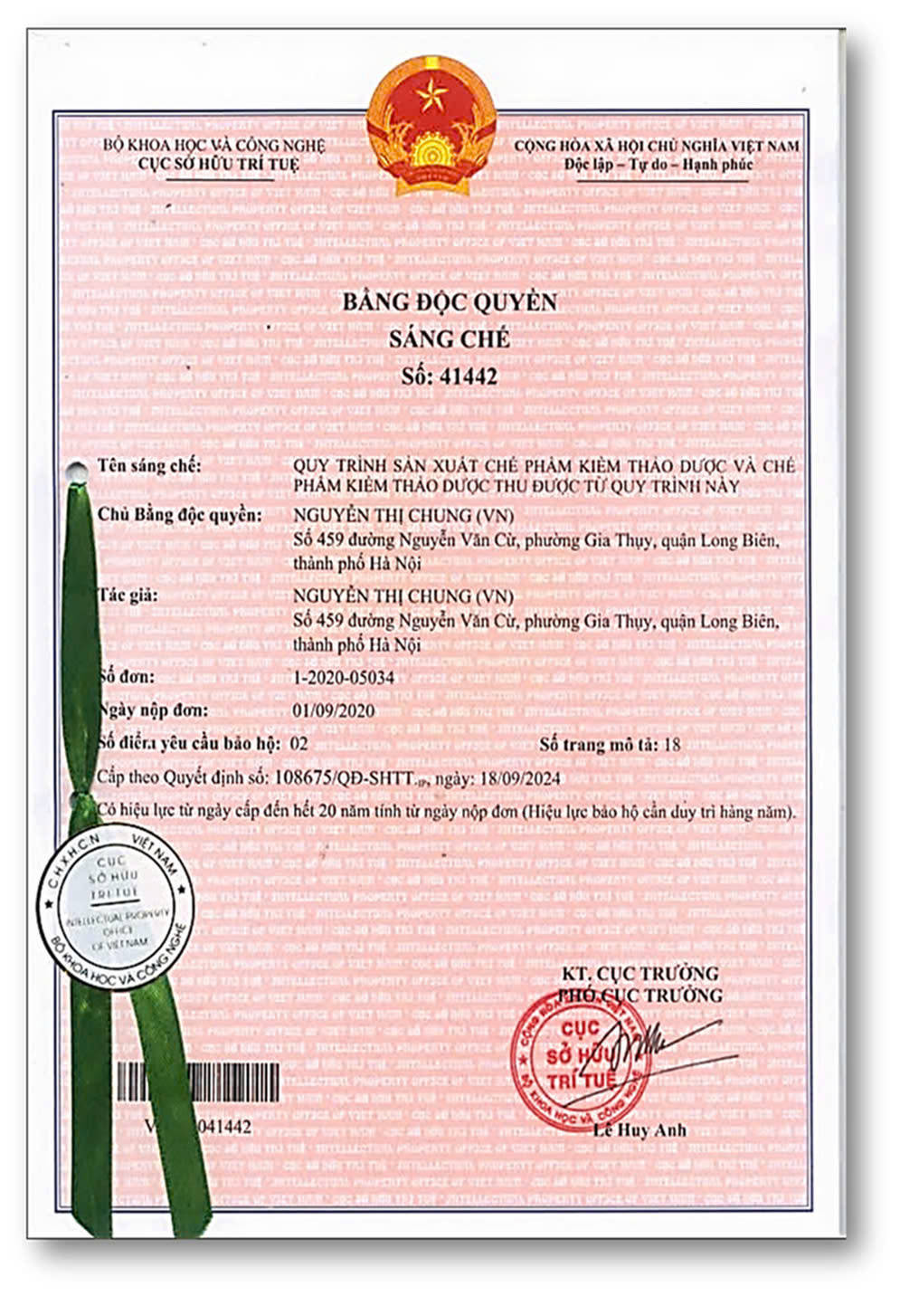 Bằng Độc Quyền Sáng Chế số 41442 - Bảo chứng cho hành trình nghiên cứu khoa học bài bản & khẳng định tính mới sáng tạo của Kiềm Thảo Dược Saphia
