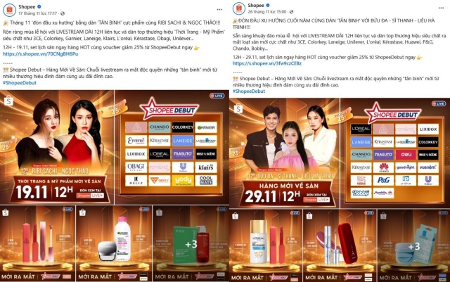 Nhiều thương hiệu lớn đã nhanh chóng tận dụng cơ hội này. 3CE phối hợp cùng KOLs/KOCs trong mạng lưới tiếp thị liên kết của Shopee thực hiện gần 1.500 phiên phát trực tiếp và video quảng bá cho sản phẩm mới, trong khi đó L’Oréal Paris cũng triển khai hơn 500 livestream và video giới thiệu dòng sản phẩm vừa tung ra. Tần suất xuất hiện dày đặc giúp cả hai thương hiệu duy trì độ hiện diện liên tục và thu hút sự chú ý đáng kể từ người dùng Shopee trong tháng 11.